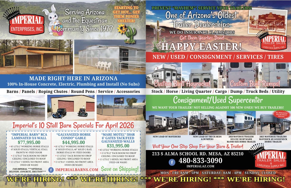 Imperial is Arizona’s #1 Dealership for all your trailer needs. With an extensive inventory from new, used, to consignment trailers fitting any and all of your needs, Imperial will have what your looking for or we’ll find / order it.. Trailers range from Gooseneck to bumper pull, horse, livestock, living quarters, utilities, equipment, cargo, flatbeds / car haulers, Truck flatbeds and occasionally toy haulers / fifth wheels. Imperial also has a full service maintenance / warranty department including a fully stocked parts department and is the home of the “24 PT Yearly Maintenance” special. Insurance jobs?? You bet.. Most insurance companies in AZ use Imperial for our knowledge and experience. Imperial staff can take a completely wrecked “totaled” trailer, and turn it new again. Imperial also offers trailer tires, paint jobs, livestock equipment, panels, pipe, mats, you need it, call Imperial because we may have it.